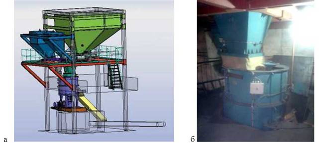 Распределение ключевого компонента в объеме наполнителя происходит под воздействием высоких динамических энергий. Интенсивное разнонаправленное поступательно-вращательное движение всей смеси, ее микрообъемов и каждой отдельной частицы обеспечивает получение высококачественной смеси, отличающейся высокой степенью гомогенизации. Высокие скорости движения зерен и непрерывное соударение частиц приводит к механической активации связующего комплекса, обеспечивая тем самым повышение прочностных характеристик смеси. Вихревые смесители фирмы "БЕЛНИИЛИТ" (рис. 1.4) работают в виде целого смесительного комплекса, что значительно увеличивает энергопотребление предприятия, а также требует более тщательного обслуживания, время- и трудозатрат при ремонте.