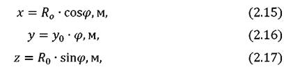 где R0- радиус окружности в плоскости xOyzвинтовой поверхности, м;