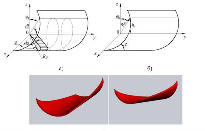 Рассмотрим движение элементарного объёма бетонной массы dVпо поверхности лопасти в цилиндрических координатах (r, φ, у):