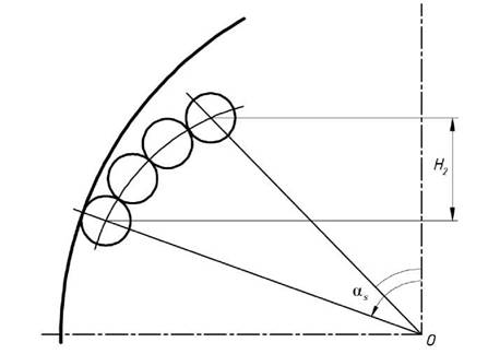 Величина Н2 определяется углом αsи длинной дуги l2.Если длина окружности разбита на nlчастей, 1ш может быть определено каї