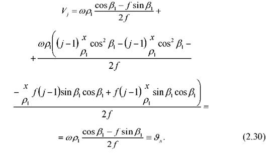 С точностью до величин второго порядка малости скорость движения частицы материала вдоль поверхности криволинейной лопасти ротора можно считать постоянной величиной, значение которой определяется выражением (2.30).