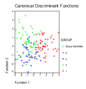 a First 2 canonical discriminant functions were used in the analysis.