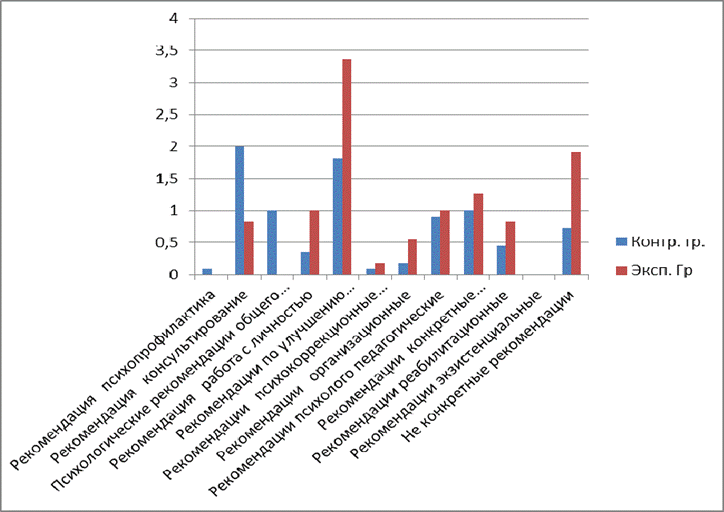контрольной и экспериментальной группами по сформулированным рекомендациям