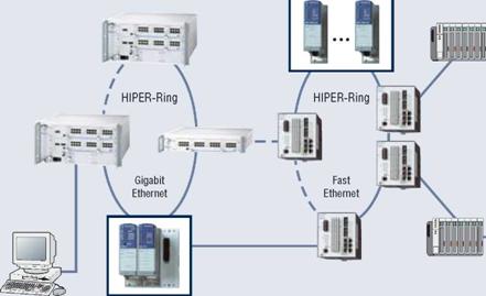Рис. 4. Пример комбинированной сети из нескольких колец HIPER-Ring
