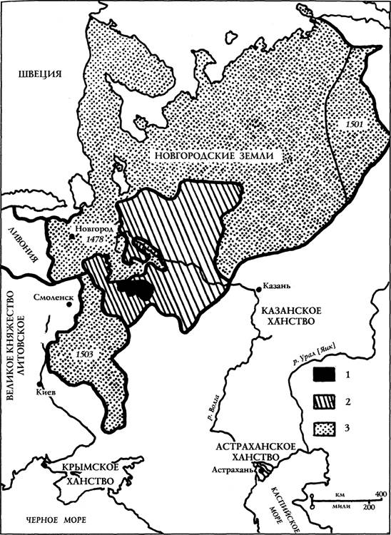 B восточной части континента к концу XV столетия важнейшим событием стала энергичная экспансия Московского государства. При Иване III (1462—1505) и Василии III (1505—1533) территория, подчиненная Москве, утроилась. Поначалу в нее были включены области, соседствующие непосредственно с Москвой — Ярославль и Ростов, затем Новгород в 1478 году, Тверь в 1485 году и Псков в 1510 году; последнее независимое русское княжество, Рязань, было взято в 1520 году.