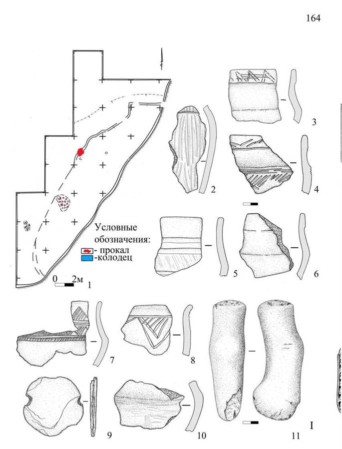 I- Поселение Кулевчи IIl (1-11).1-план поселения, 2-5-сосуды,