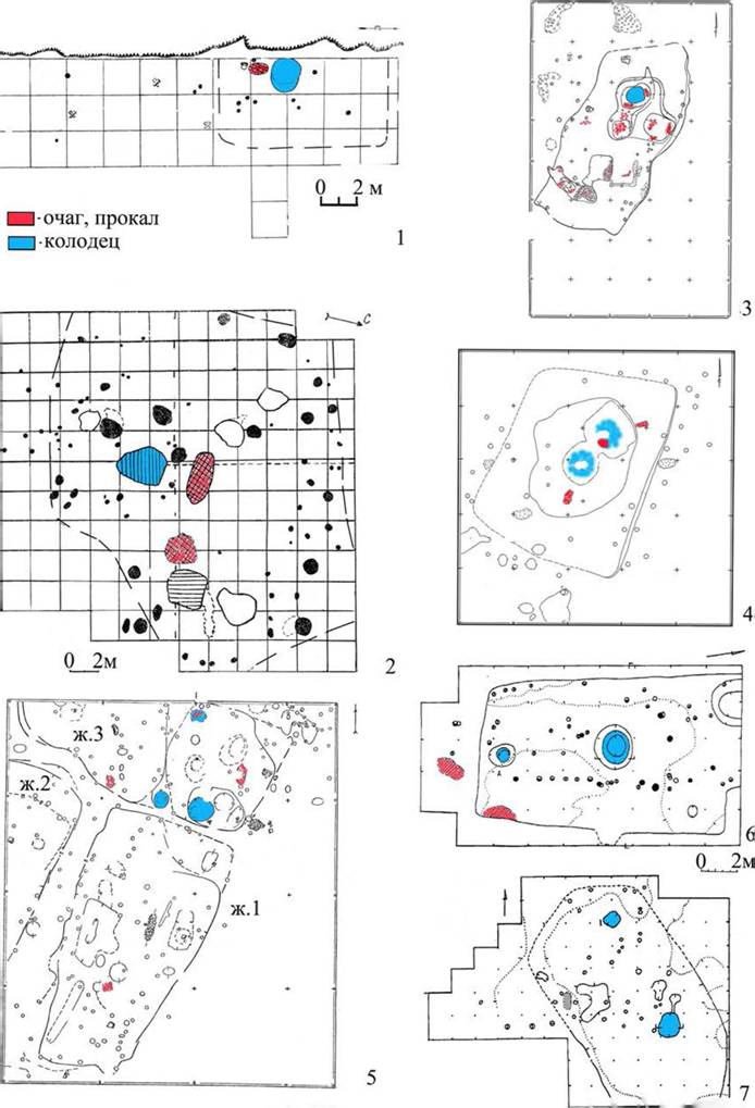 Рис. 16. Колодцы на поселениях позднего бронзового века Урало- Казахстанского региона.
