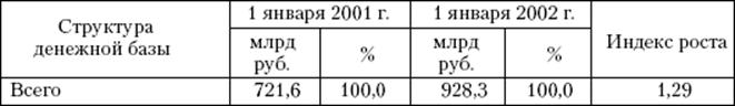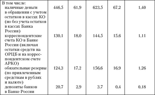 Изменения в структуре денежной базы характеризуются увеличением удельного веса наличных денег в обращении, сохранением почти неизменной доли обязательных резервов при относительном сокращении остальных ее составляющих.