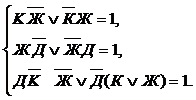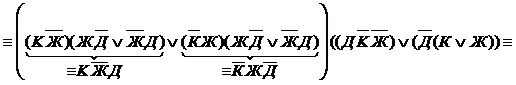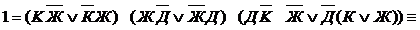 Условие задачи будет выполнено, если одновременно истинны эти три высказывания, а значит истинна их конъюнкция. Перемножим эти равенства (т.е. возьмем их коньюнкцию)