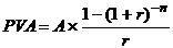 Формула для розрахунку звичайного аннуітету має вигляд: