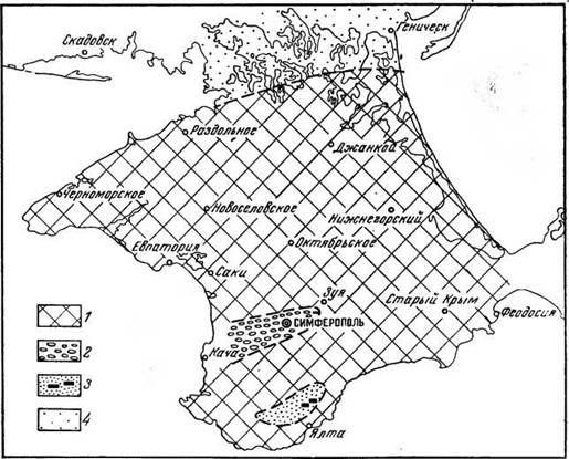 Песчано-глинистые образования возможно юрского возраста известны и в районе пос. Саки (северный борт Альминской впадины), где они залегают на глубинах от 900 до 1400 м. Можно допустить, что они распространяются и южнее, в пределы осевой части этой впадины, протягиваясь из западных районов горного Крыма.