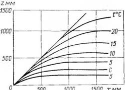 Зависимость годовой суммы испарения (z) с поверхности речных бассейнов от годовых сумм атмосферных осадков (х) и среднегодовых температур воздуха (Z), по В. Вундту.