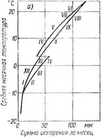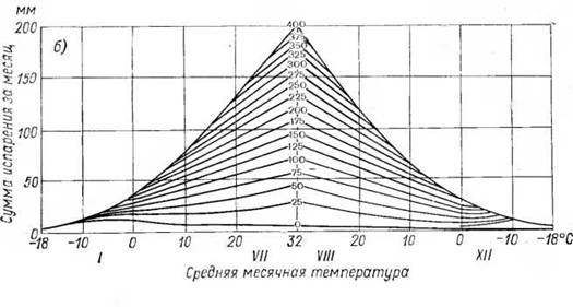 Графики Майера. а — испарение с поверхности воды,