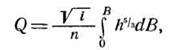 где q — расход на единицу широты русла; і — уклон водной поверхности; п — коэффициент шероховатости; h — глубина потока. Вычислив по этой формуле величины расходов на некоторых вертикалях, можно построить интегральную кривую нарастания расхода (Q) по ширине русла (В)