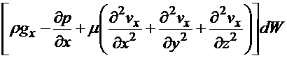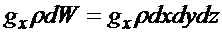 Суммируя проекции (3.4), (3.5) и (3.8), получаем проекцию равнодействующей всех сил, приложенных к объёму dW, на ось ОХ: