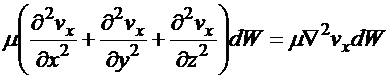 - оператор Лапласа, который обозначает сумму вторых частных производных от проекции скорости на ось ОХ.