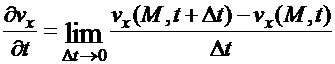 Чтобы охарактеризовать изменение vx для данной частицы жидкости за промежуток времени Δ t, следует за прирост vx принять разность между значениями функции vx в момент t + Δt в том положении частиц М’, в котором она находится в тот момент, и значением функции vx в момент t в исходном положении М частицы. Граница отношения этого приращения к Δt при Δt → 0 и называется субстанциональной производной.