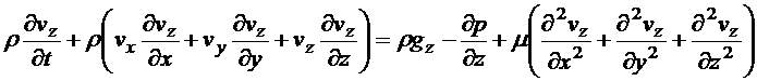 Уравнение (3.12), (3.13) и (3.14) образуют систему дифференциальных уравнений движения несжимаемой жидкости Навье-Стокса. Эта система справедлива как для ламинарного, так и турбулентного движения.