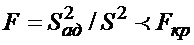 Рассчитывается оценка дисперсии воспроизводимости со степенью свободы f = f1 ? f2: