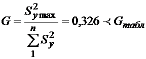 Проводится проверка гипотезы об однородности выборочных дисперсий воспроизводимости.