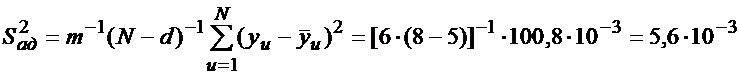 Рассчитывается оценка дисперсии воспроизводимости со степенью свободы f = f1 ? f2 = 5 ? 8 = 40: