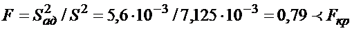 Адекватность проверяется по критерию Фишера. При уровне значимости 1 - α = 95% и степенях свободы