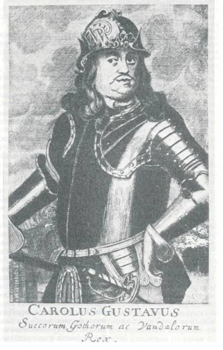 Король був дуже вдячний за той повторний відгук Хмельницького й на його приязнь, оскільки мав до поляків свої певні й значні претензії, але на перший відгук Хмельницького був змовчав і не дав відповіді, однак пильно наказав своїм генералам і провінційним губернаторам ретельно споряжати військову амуніцію, збирати й оглядати військовий люд419. A після повторного нагаду Хмельницького і відгуку до нього король виправив до Хмельницького зі значними подарунками (сукон, матерій і срібнозолотих посудин на одинадцять тисяч золотих доброї литовської лічби) у посольстві генерал-майора Вільгельма Карлуса 42°, наказавши йому добиратися від Риги через Курляндію, Литву і Полісся в Київ до Хмельницького купецьким чином і по дорозі якнайретельніше дізнаватися, а особливо розпитати Хмельницького про всі польські дії і привезти з собою про те швидке донесення. Той посланець, генерал-майор, діючи за наукою свого пана, прибув щасливо в Чигрин до Хмельницького, і, віддавши йому королівського листа, подякував за подвійні листовні до його короля відозви, і вручив при цьому королівські дарунки, які Хмельницький удячно прийняв, дуже врадуваний на таку королівську ласку й прихильність до себе.
