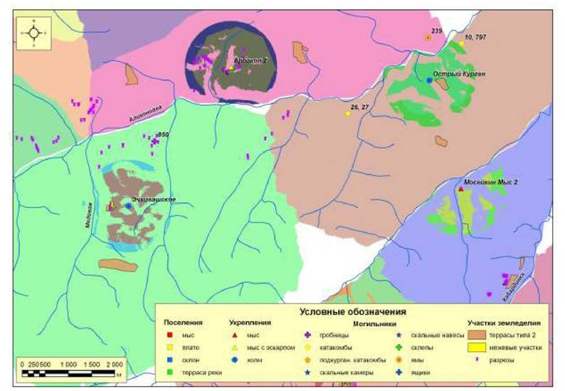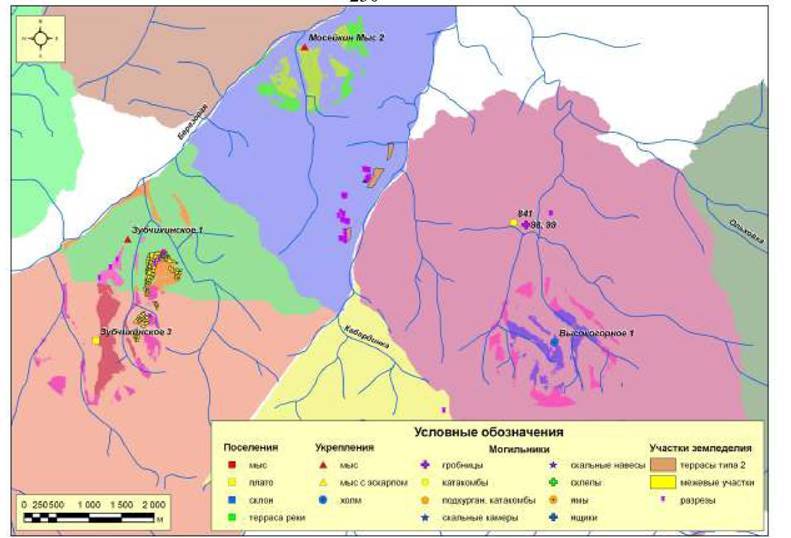 Рис. 229. Распределение поселений Кисловодской котловины второго