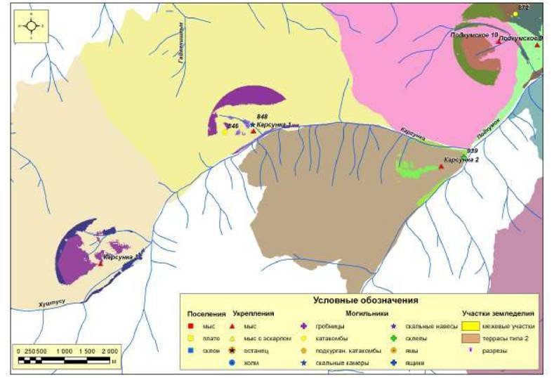 хронологического периода (II-IV вв. н.э.) и участков террасного земледелия второго типа в километровой зоне вокруг поселений
