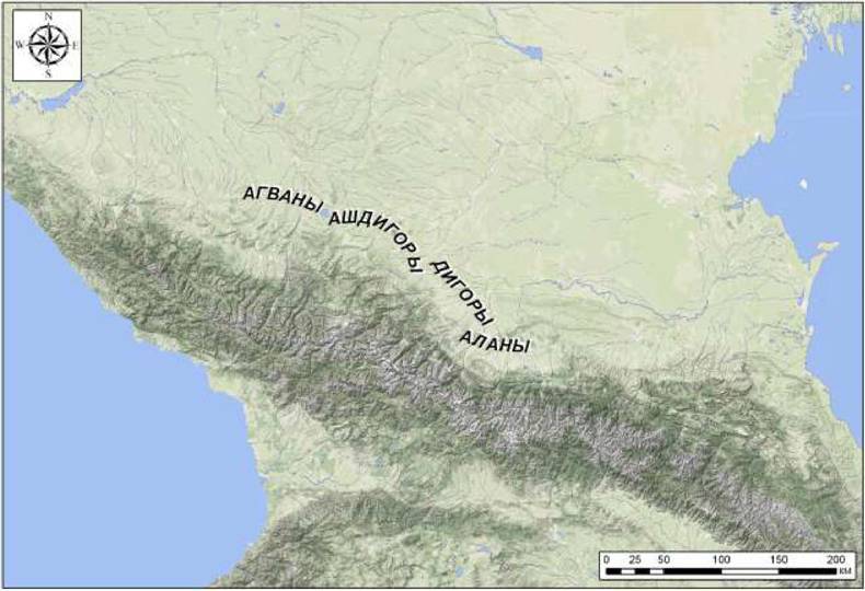 Рис. 274. Размещение аланских племен по данным «Армянской географии VII в.» в интерпретации Г.Д. Гумбы (2007)