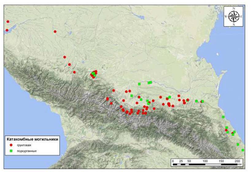 Рис. 275. Катакомбные могильники Северного Кавказа I тыс. н.э.