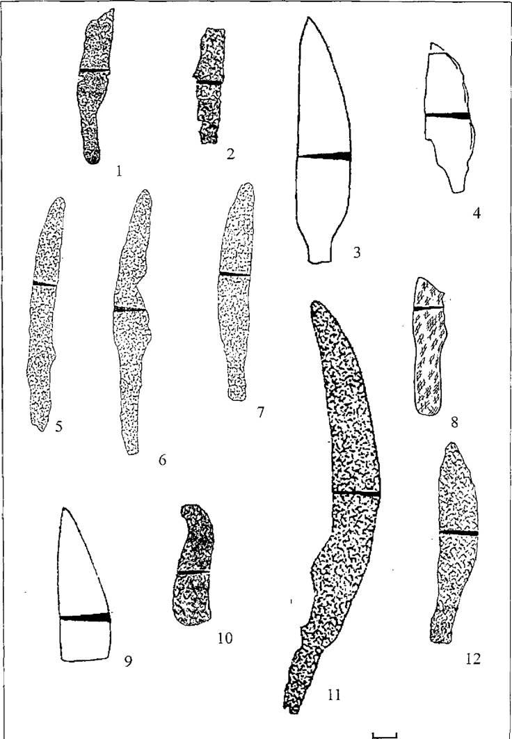 1-2,10,12 - Дубики, 3 - Курино 1,4- Ксизово 17, 5-7 - Малый Липяг, 8 - Перехваль 2, 9 - Сырское городище, 11 - Воргол.