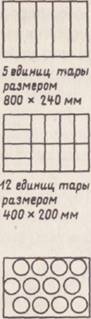 На основании базового модуля разработана единая система унифицированных размеров транспортной тары. Принцип создания этой системы заключается в том, что площадь поддона разделяют на сетку кратных поддону размеров, которые определяют наружные и внутренние размеры транспортной тары.
