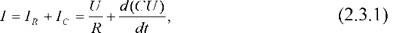 В случае нелинейных диэлектриков ёмкость образца является функцией напряжения и не может быть вынесена из под знака производной. Принимая это во внимание, емкостная компонента тока может быть представлена в виде [167]
