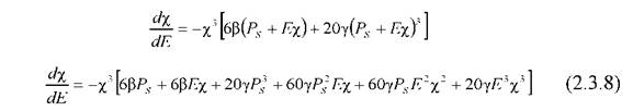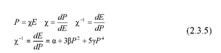 Чтобы получить нелинейный вклад, определяемый последним членом в (2.3.4), необходимо найти производную по полю от диэлектрической восприимчивости χ, которая определяется из (2.3.6) дифференцированием по поляризации.