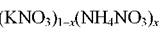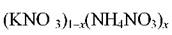 Методика приготовления образцов подробно описана в параграфе 2.1. Данные по исследованию линейных и нелинейных свойств KNO3представлены в параграфе 1.5. Фазовый состав смеси нитратов калия и аммония исследовался в работах [169, 170]. Твердые растворы нитрата аммония в нитрате калия формируются только при значениях температуры ниже 298 К. При более высокой температуре присутствует большое количество фазы, которая представляет собой твердый раствор нитрата аммония в метастабильной фазе III нитрата калия. Согласно данным работ [169, 170], смесь нитратов калия и аммония в исследуемых концентрациях образует твердые растворы с сохранением кристаллической структуры нитрата калия. Нитрат аммония встраивается в кристаллическую решетку KNO3. Можно предположить, что примесь малых количеств нитрата аммония должна вызывать в кристаллах нитрата калия локальные искажения, приводящие к изменению диэлектрических свойств и сдвигу фазовых переходов.