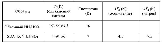 этих работах). Для малых частиц в неполярном окружении было предсказано сужение области существования сегнетоэлектрической фазы. Для бисульфата аммония это означает понижение температуры верхнего и понижение температуры нижнего переходов. Предсказания теоретических моделей в основном коррелируют с экспериментальными результатами, полученными для изолированных сегнетоэлектрических частиц и частиц, введенных в матрицы с нецилиндрическими порами [121, 124, 126, 178-180]. Для частиц сегнетовой соли, введенной в поры молекулярных сит МСМ-41, также наблюдалось сужение области существования сегнетоэлектричества за счет повышения температуры нижнего фазового перехода и понижения температуры верхнего перехода [104].
