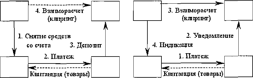 Системы платежей по чекам или кредитным картам функцио-нируют по иной схеме, а именно: