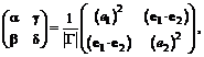 на площині в очевидний спосіб пов'язана з довжинами e1, e2 векторів базису та кутом
