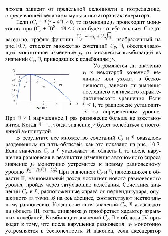 Уравнение (Ю.1) является неоднородным конечноразностным уравнением второго порядка, характеризующим динамику национального дохода во времени.