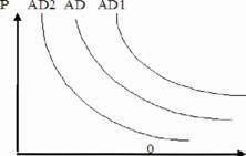 Рис.4.3. Кривые совокупного спроса AD, ADI, AD2.
