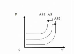 - рост производительности труда - увеличение объемов производства связано с ростом совокупного предложения; кривая совокупного предложения смещается вправо;
