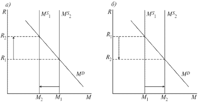 а) уменьшение денежной массы; б) увеличение денежной массы