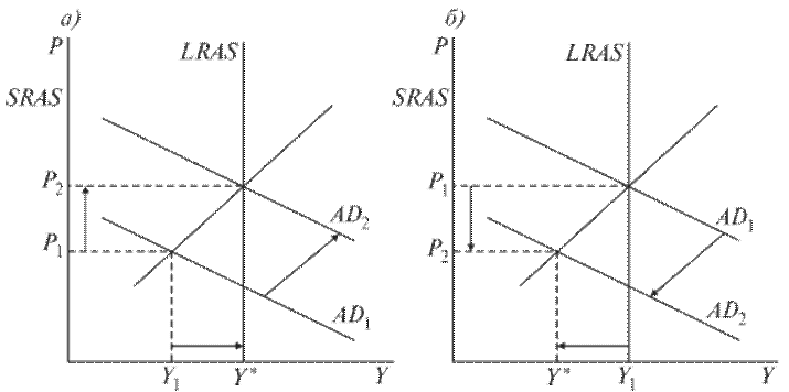 а) стимулирующая монетарная политика; б) сдерживающая монетарная политика