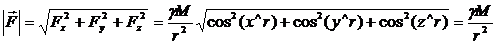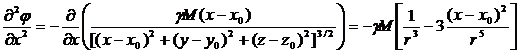 , где r – расстояние между точкой с координатами (x0,y0,z0) где расположена масса M, и точкой наблюдения с координатами (x,y,z).