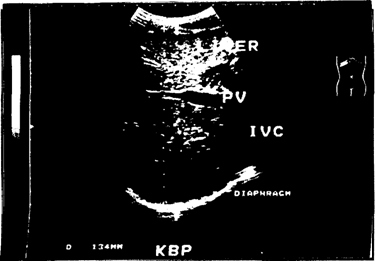 ККР и толщина левой доли измеряются в положении продольного сканирования с расположением датчика в сагиттальной плоскости по средней линии тела практически в вертикальном положении. Получаемый при этом поперечный срез левой доли позволяет провести оба измерения одновременно.
