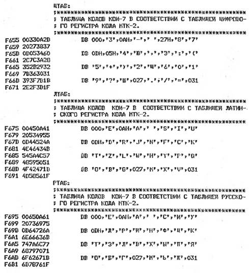 - драйвер обмена с телетайпом
