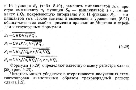 Формулы (5.26) определяют широко распространенную схем у регистра сдвига ІГЗІ на i?S-триггерах (рис. 5.21).