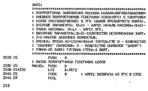 Поиск заданного байта производится с помощью итеративного цикла, в котором исходный байт последовательно сравнивается с каждым байтом массива. При первом же успешном сравнении осуществляется возврат из программы. Адрес байта, подлежащего сравнению на текущей итерации, располагается в регистровой паре (Н, L), что автоматически обеспечивает требуемое значение выходного параметра при успешном поиске.