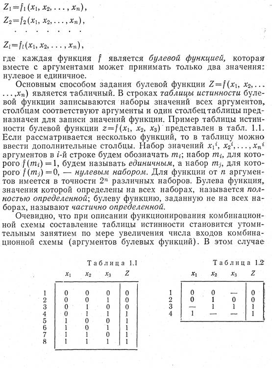В комбинационных схемах соответствие между наборами значений входных и выходных сигналов определяется системой, функций